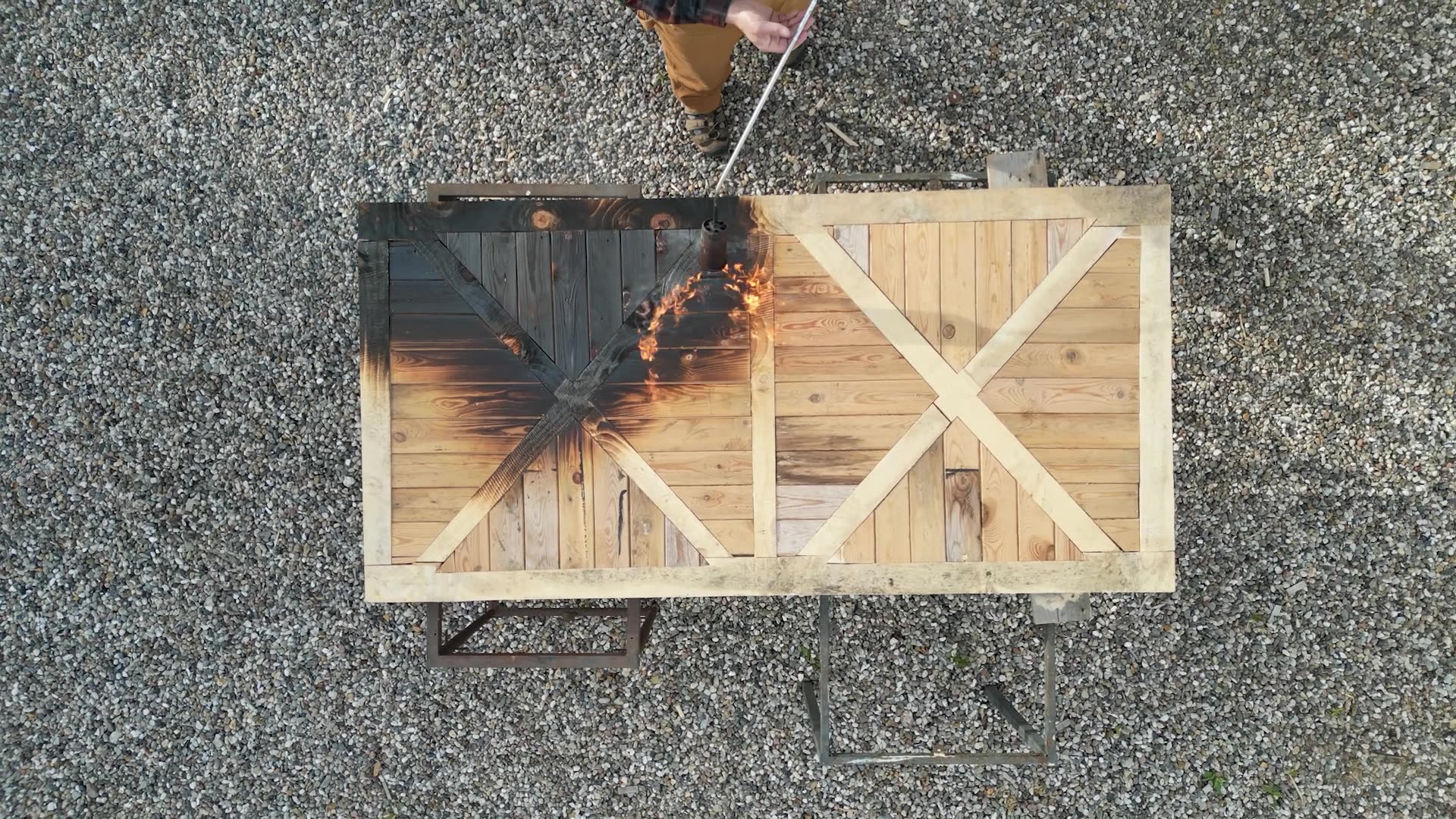 The build that started everything. Pallet blocks, wood glue, fire, and a finish that turned scrap into something people actually want in their living room.