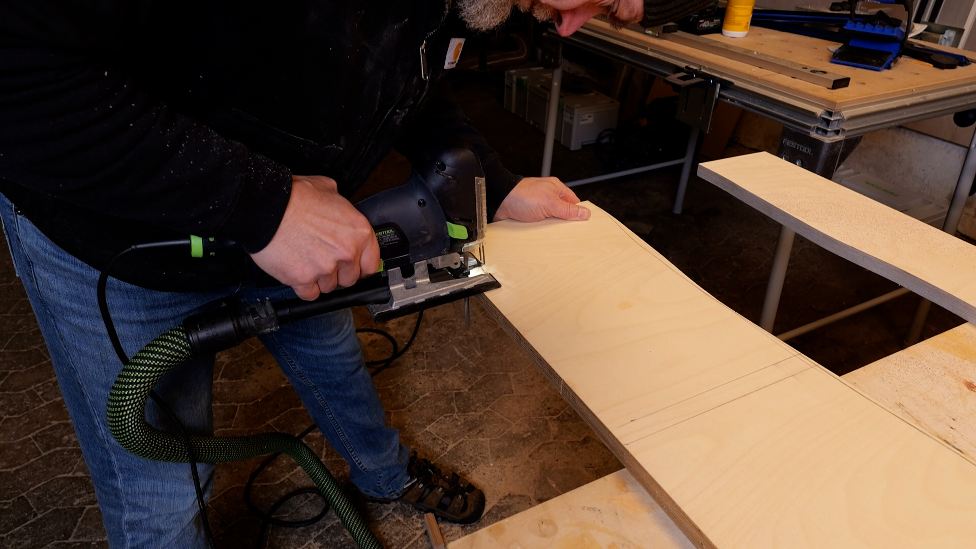 I used to avoid jigsaws. They wandered, they splintered, they felt imprecise. Then I tried the Carvex and realized the problem wasn't jigsaws, it was every other jigsaw I'd used. The PS 420 cuts curves that look like they were routed. It gets into the corners where the round blade on a circular saw can't reach, which means I actually finish cuts properly instead of leaving little triangles of uncut material. The three-way guidance system keeps the blade tracking true even through thick hardwood. Dust extraction is Festool-level good. And the tool-free blade change means I actually swap blades when I should instead of forcing one blade through everything. It's the tool that made me stop hating jigsaws.