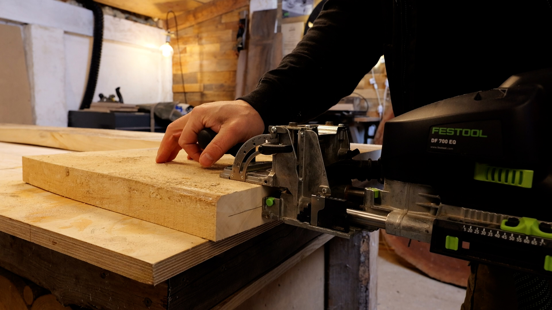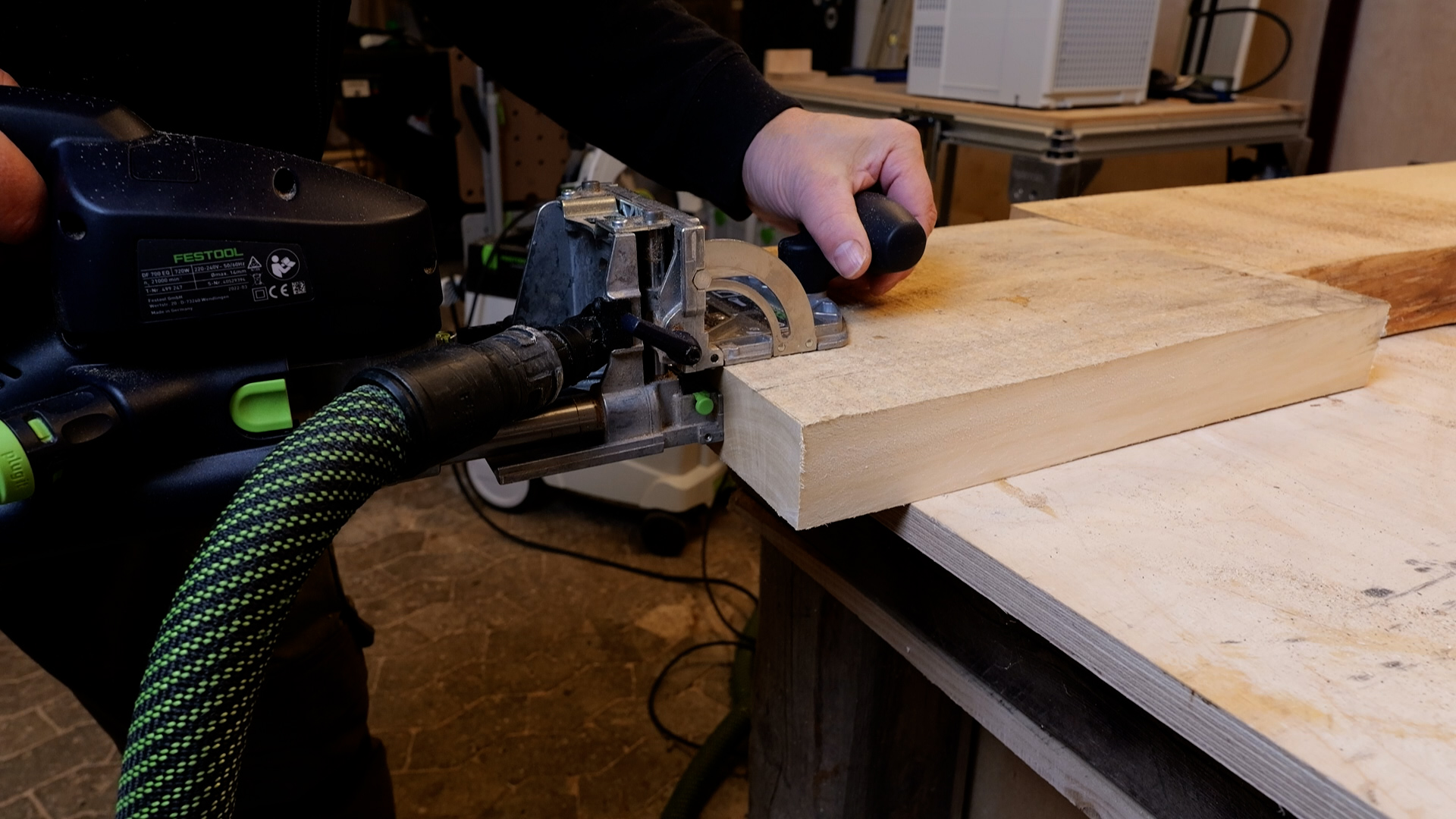 The DF 700 is the Domino you reach for when the material gets serious. Thick hardwood slabs, bed frames, heavy tables, timber framing joints. The larger tenon sizes (up to 14x140mm) create joints that are genuinely structural. I use it for anything where the DF 500's tenons would feel undersized. The machine is heavier, the plunge is deeper, and the mortises it cuts are massive. You can see the slots it leaves in thick timber and know that joint isn't going anywhere. Same principle as the DF 500 (pendulum milling, adjustable stops, repeatable positioning), just scaled up for serious work. If you're joining anything thicker than 40mm, this is the one.