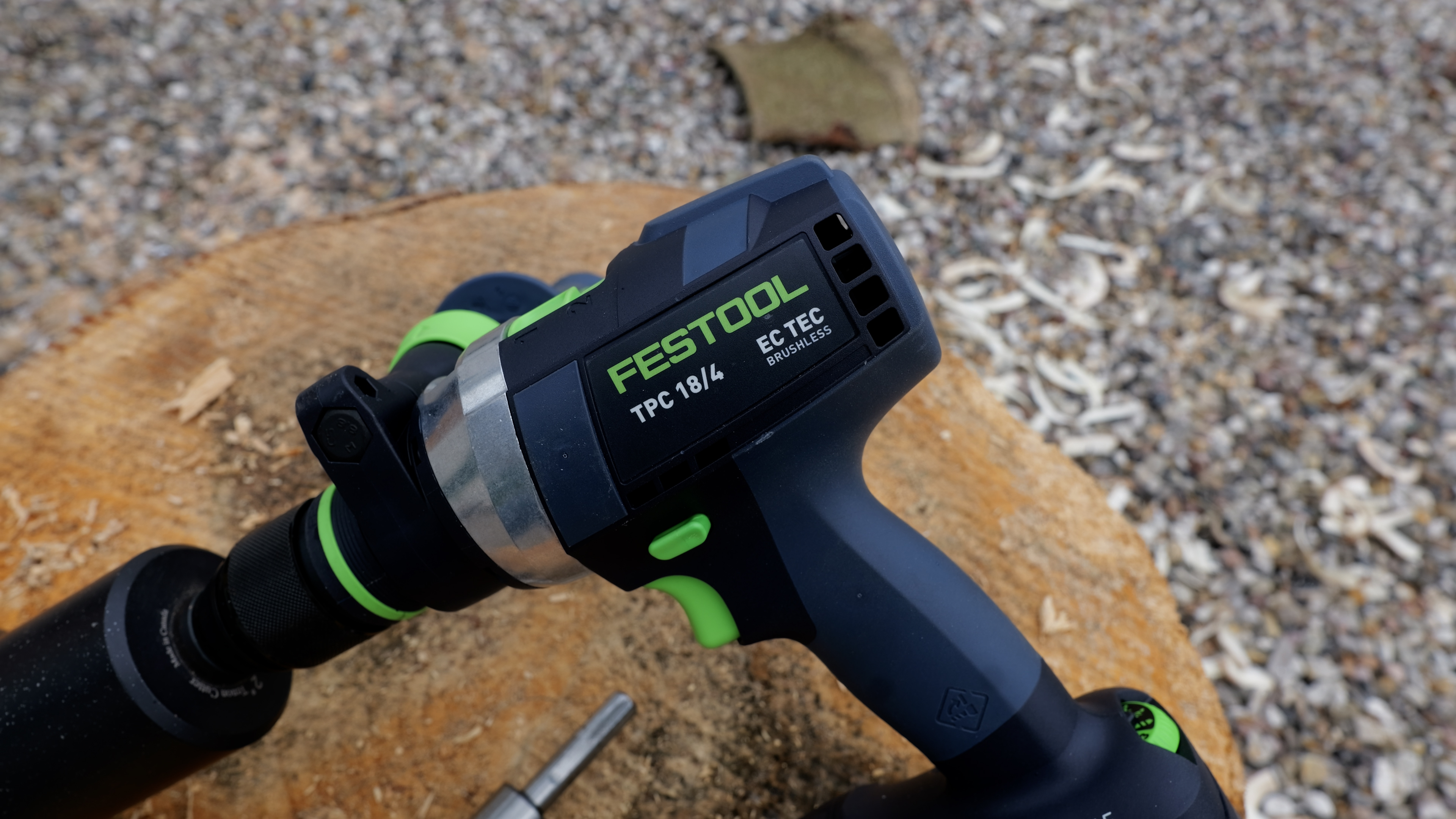 The TPC 18/4 is Festool's answer to "what if a drill just never stopped?". The four-speed QUADRIVE gearbox means you always have the right speed and torque combination, whether you're driving small screws into softwood or pushing a massive auger bit through a tree stump. The EC-TEC brushless motor doesn't waste energy. The percussion mode handles masonry when you need it. It runs on the same 18V battery platform as every other Festool cordless tool, and it's the one drill in the workshop that has never made me wish I had something more powerful. For timber framing, cabin building, and any project where you're working with serious material, this is the one.