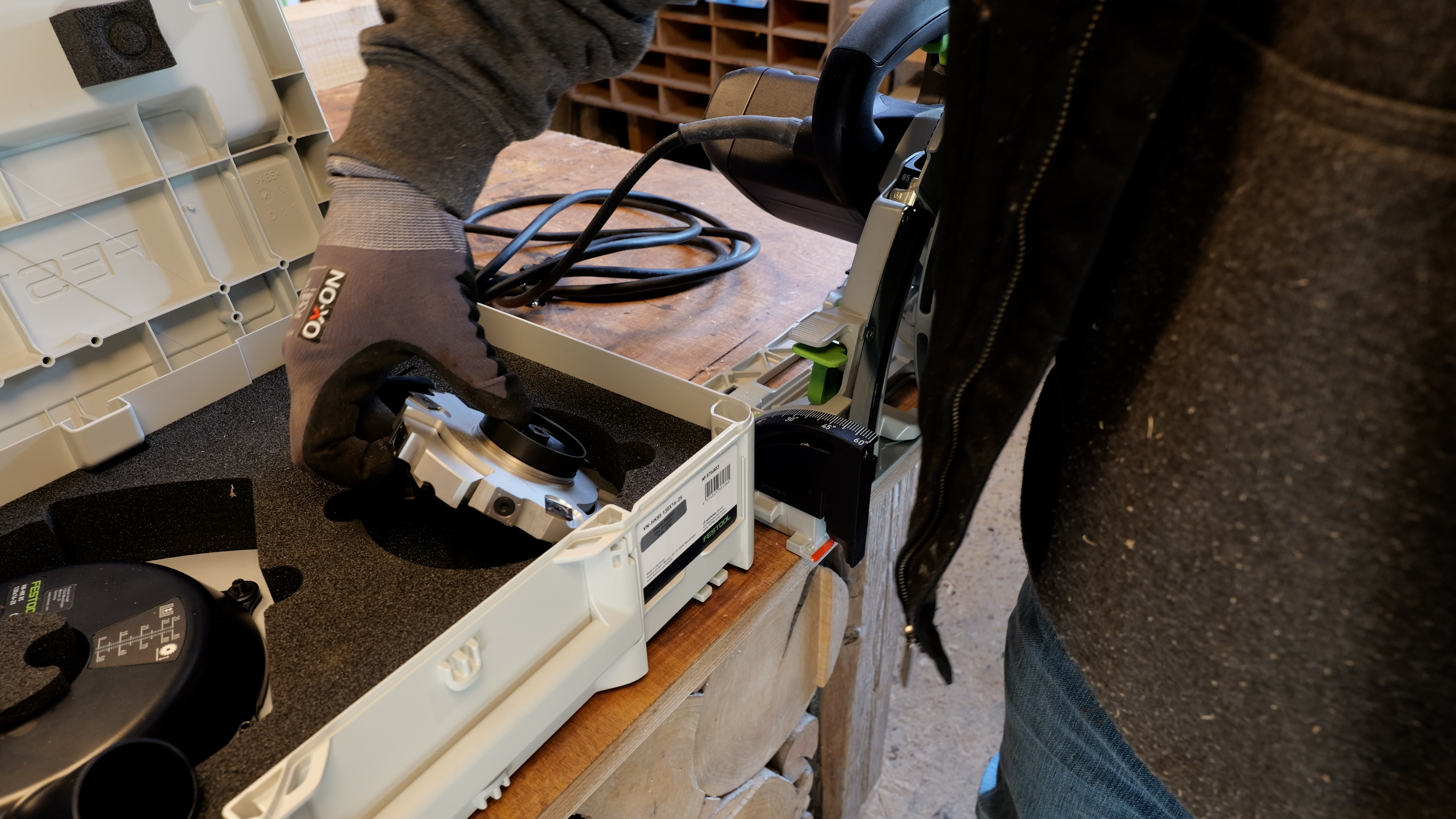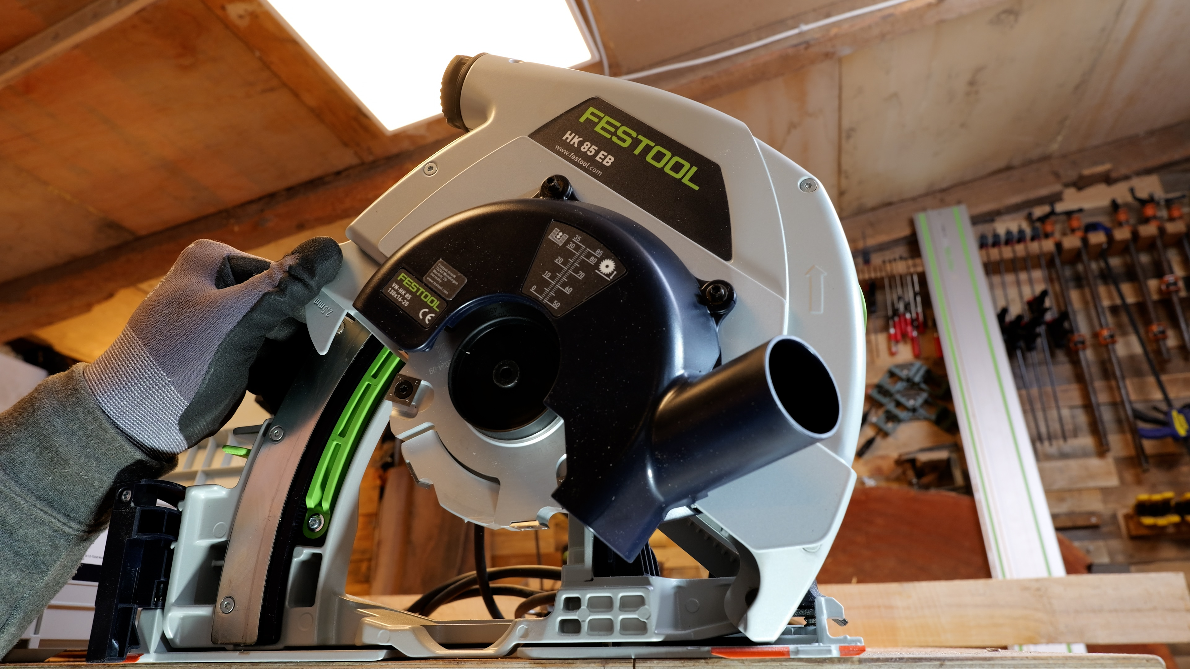 This attachment turns the HK 85 into something completely different. Swap the saw blade for the groove cutter head and you've got a machine that eats through material for grooves, half-lap joints, and dados. It's the kind of work you'd normally do with a big router and a massive bit, but this runs on the Festool guide rail so it's dead precise and controlled. I use it for timber framing joints, housing dados for shelves, and anywhere I need to remove a lot of material in a straight line. It's fast, it's powerful, and the cuts are clean. One of those Festool accessories that makes you wonder why every circular saw doesn't have this option.