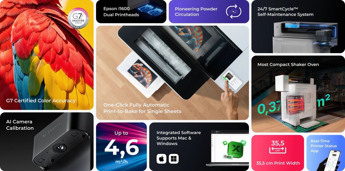 DTF apparel printer for custom prints on t-shirts, hoodies, bags, and more. Print your own merch or maker branding with professional quality.